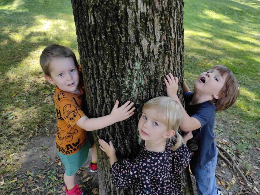 Przedszkolaki z grupy I i II wzięły udział w ogólnopolskiej kampanii "Przytul się do drzewa"